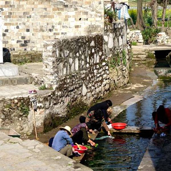 十八踏是老街五道石井第一道,据说是当年乾隆皇帝下江南,路过宣城,在此饮过水。井下两只石狮护卫的是青石砌成的方形古井,一座石拱小桥划分用水类别:桥上饮用,桥下盥洗。井水清澈甘冽,终年不涸,从水池流到街外小河,再汇入水阳江中。