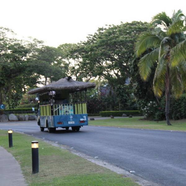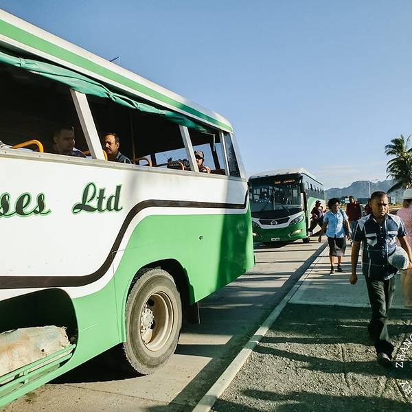在周一和周六定时有大巴从楠迪汽运站开往丹娜努港口,首班车早上8:30发车,末班车17:00发车,花费0.8斐济元和20分钟的车程。