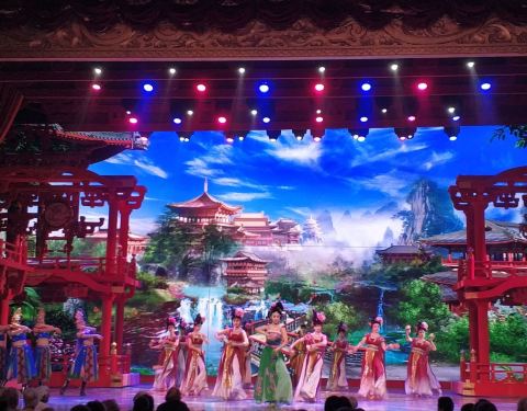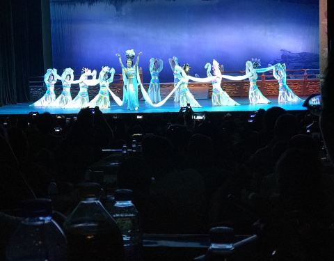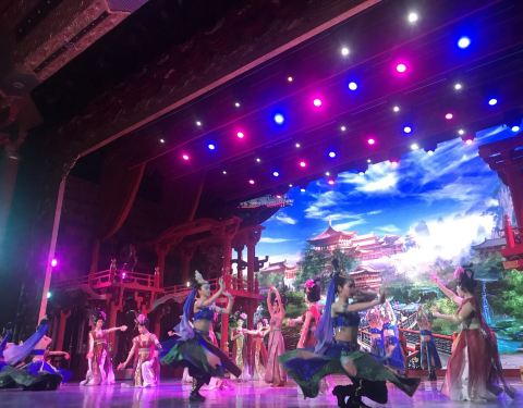...师现场配音,仿佛时空穿越梦回千年,最赞的是表演精彩纷呈,舞蹈演员妆容服饰道具都很用心,视觉盛宴首先剧院装修设计华美大气金碧辉煌,坐在里边盛唐气象扑面而来,其次两边着盛装演奏传统乐器的乐师现场配音,仿佛时空穿越梦回千年,最赞的是表演精彩纷呈,舞蹈演员妆容服饰道具都很用心,视觉盛宴。