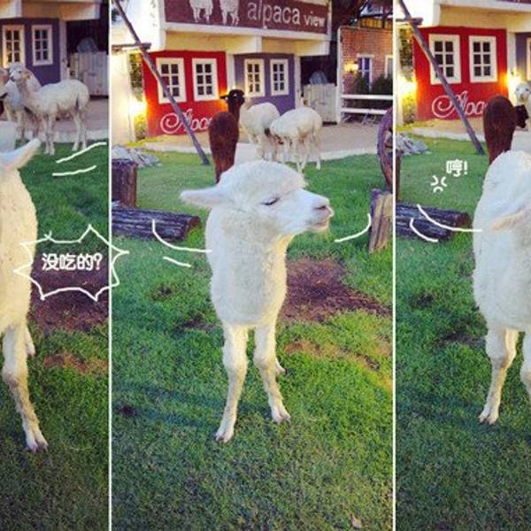 看来这里非常适合带小朋友来哦。 餐厅是个露天的牧场,养了好多羊驼,萌萌哒超可爱的