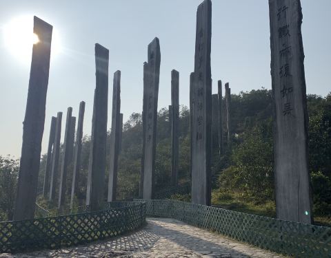 但是简林真的很震撼,直立在土壤中的木简,像森林树木,上面刻着心经内容心经简林位于大屿山公园里面,需要进去以后沿着一条小路绕道走不近的路程,一般去心经简林的人不多。但是简林真的很震撼,直立在土壤中的木简,像森林树木,上面刻着心经内容。