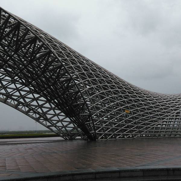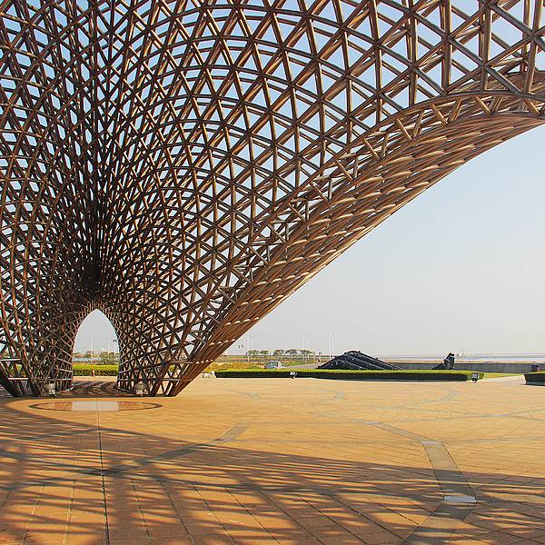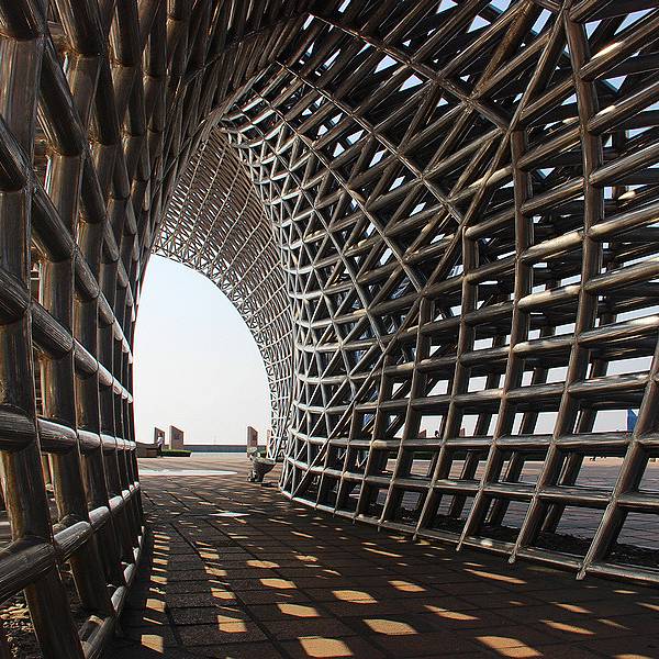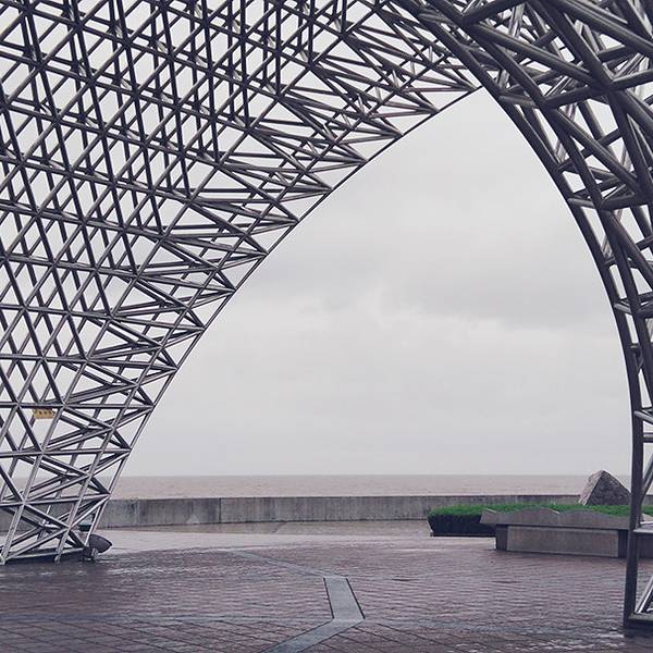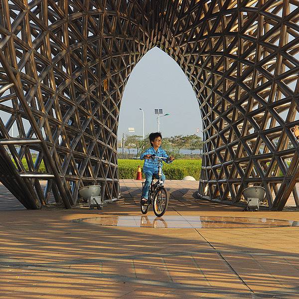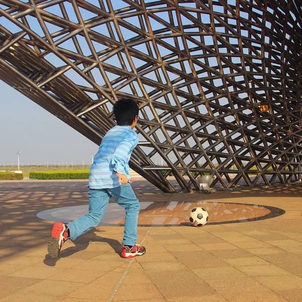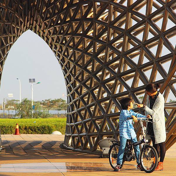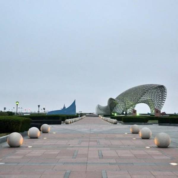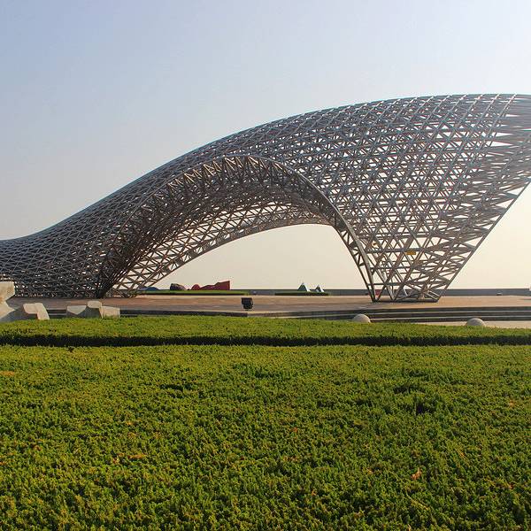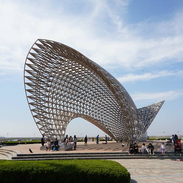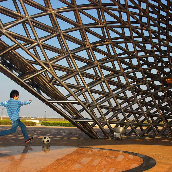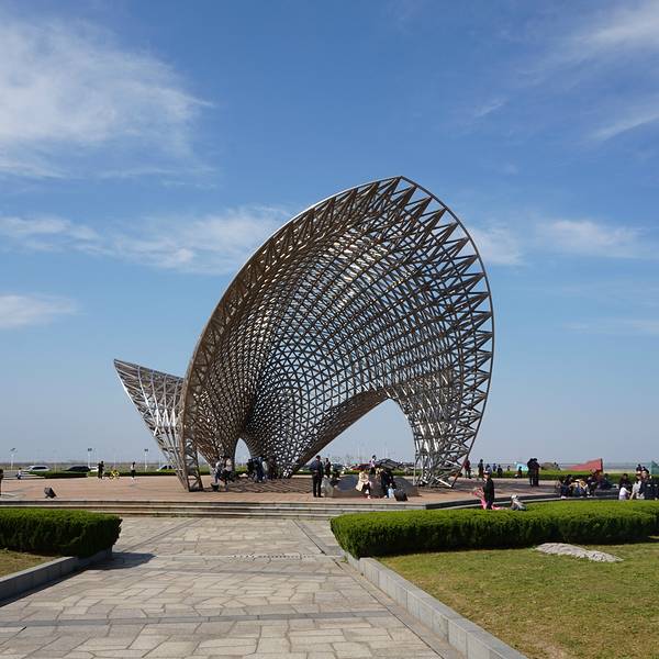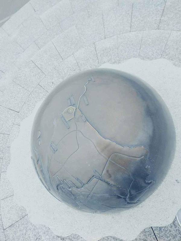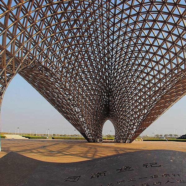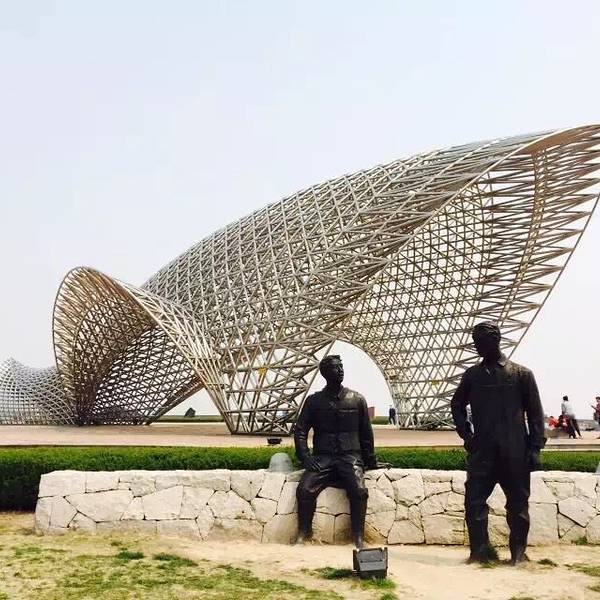 整个公园的标志性雕塑是由不锈钢管构成的双层网架结构、总用钢量约120吨的“司南”2014年10月28日