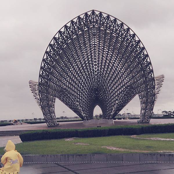 去的时候天气不作美,有点下雨。我们是从滴水湖开过去的,指示牌非常明显,很好找。公园有收费停车场,但是在公园门口的字那边停车是不要钱的,还蛮方便,总体来说,如果不看海什么,公园没有特别的玩的意思。天气好的话可以玩的比较痛快点,有个标志性的雕塑,还蛮后现代的。