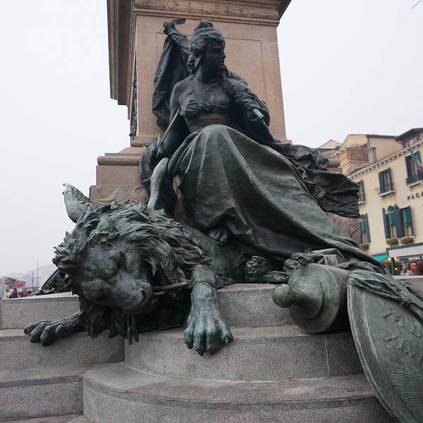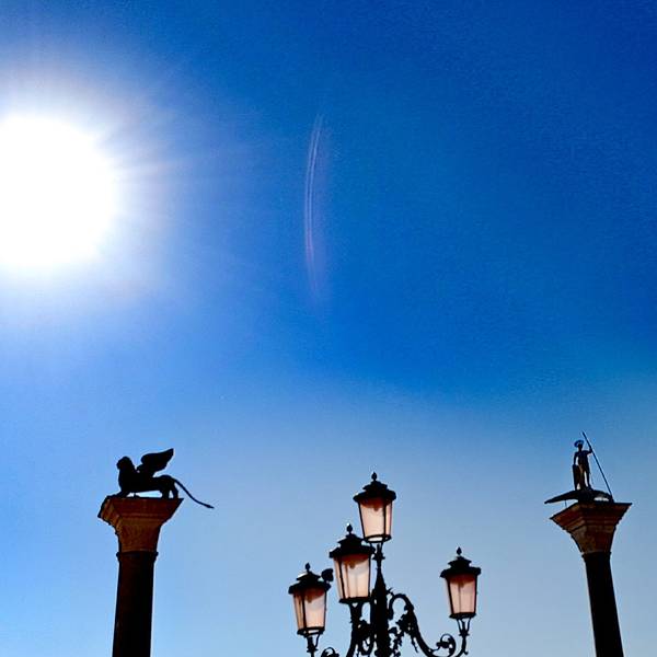 ...,在电影银幕上曾经羡慕的浪漫场景,在这个如诗如画半梦半醉的异国晚上,我,只剩下了激动和热泪盈眶广场的入口处,有两根高高的石柱,这两根威尼斯著名的白色石柱,一根柱子上雕刻的是威尼斯的守护神圣狄奥多,另一根柱子上挺立着一只展翅欲飞的青铜狮,它就是威尼斯的城徽飞狮。两柱之间称为“威尼斯之门”。