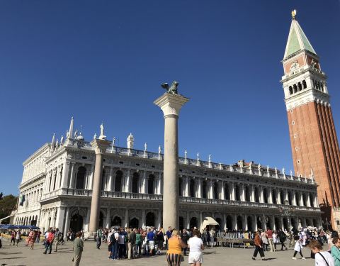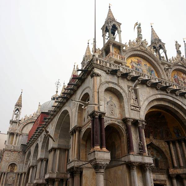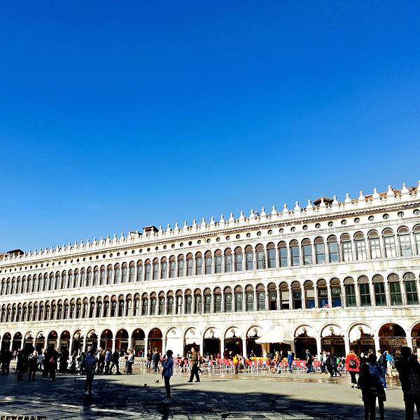 这里...在圣马可广场前溜达的过程就是个放飞自我的过程~因为前几天去了很多教堂,所以没打算去教堂里面转,就一直在广场外面旋转跳跃来着~圣马可广场好美啊~拿破仑曾说这里是世界上最美的广场~真的一点也不为过