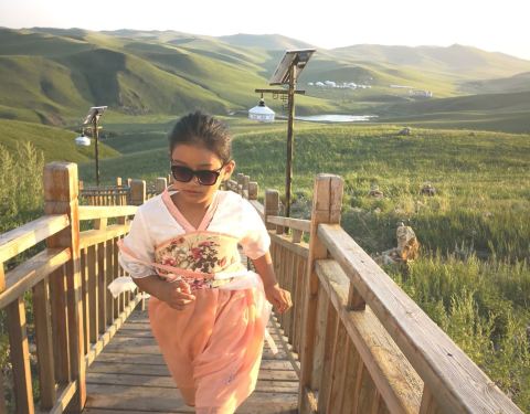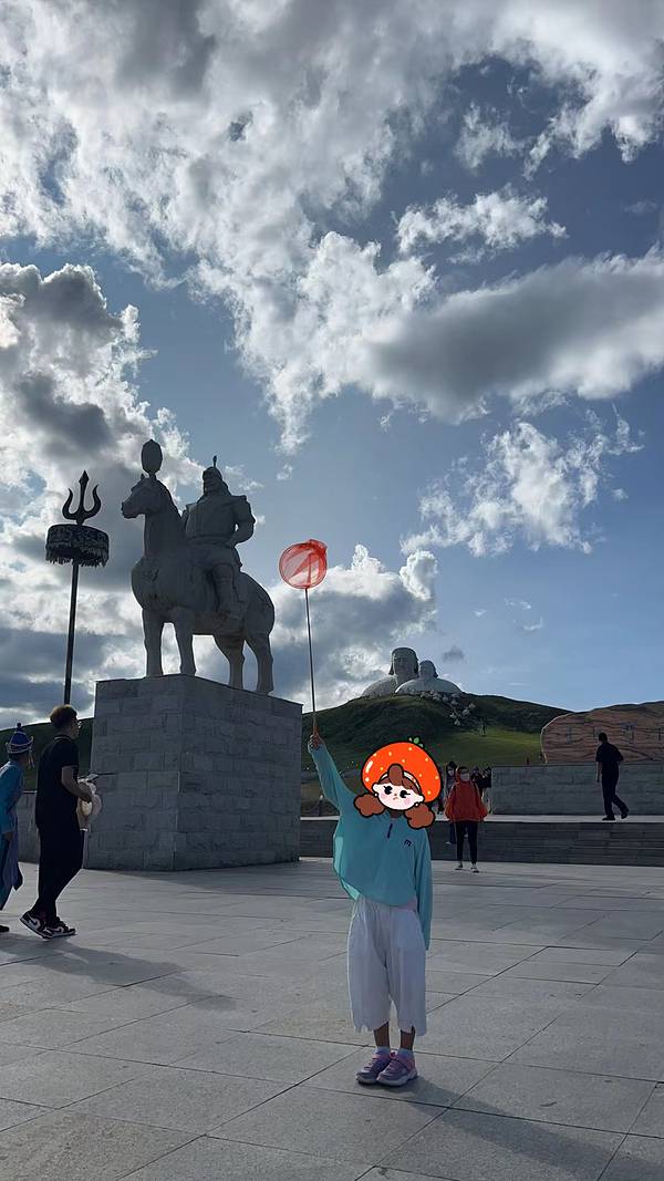 儿子喜欢化石,花了20买了一块树化石。可以讲价,水平看个人能力了,我是没发挥好。长大了自己可以骑马了要爬到左边头像那里,前面是成吉思汗,后面是忽必烈可汗山主要是介绍成吉思汗及忽必烈,2011年建成的景区,景色还是不错的,在炎热的天气里爬山还是需要点力气的,到处可见小的敖包。还可以骑马到山上。