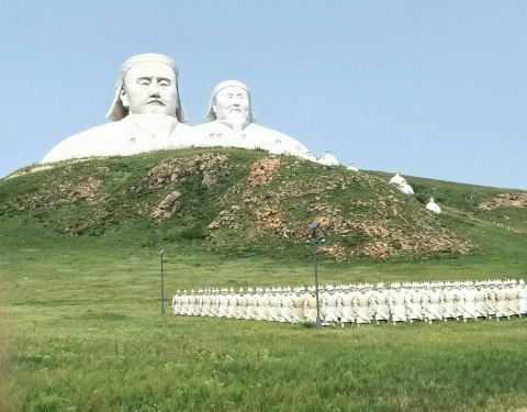 ...,但风景优美,场面宏大,吸引了不少游客前往,重点是这里还不收门票,不收停车费,还有专人输导指挥可汗山建成有六七年了,却第一次听说这里。成吉思汗的两位大将哲别,速不台雕像镇守山门,长达800米的“苍狼之路”伫立26根石人柱蒙元兵阵后身的山顶便是蒙元帝王元太祖成吉思汗和元世祖忽必烈的巨型雕像。这儿虽...可汗山建成有六七年了,却第一次听说这里。成吉思汗的两位大将哲别,速不台雕像镇守山门,长达800米的“苍狼之路”伫立26根石人柱蒙元兵阵后身的山顶便是蒙元帝王元太祖成吉思汗和元世祖忽必烈的巨型雕像。这儿虽为人工建造而成,但风景优美,场面宏大,吸引了不少游客前往,重点是这里还不收门票,不收停车费,还有专人输导指挥。马路对面有当地特色小食,还有能接待团队的餐厅。每当发布草原的微博大家都会发出这样的感叹,啊,又去内蒙啦,真的去不够吗?