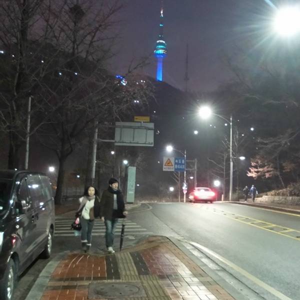 旁边就是图书馆,按地图上看南山公园应该也在附近。回去时N首尔塔的灯光已经变得很漂亮了