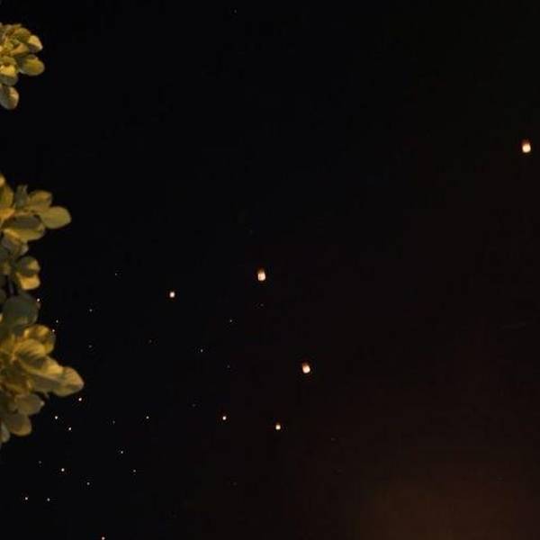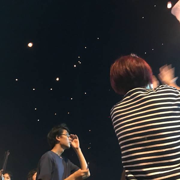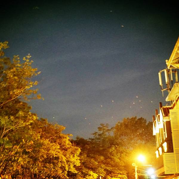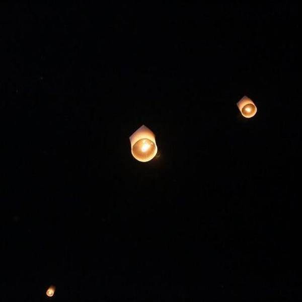 其实图上是三张不同角度的照片,因为背景很黑,放一起也不违和呢!和朋友家人一同举着天灯,等待燃烧的热气将灯内充满,放手,天灯随即慢慢升飞而去...