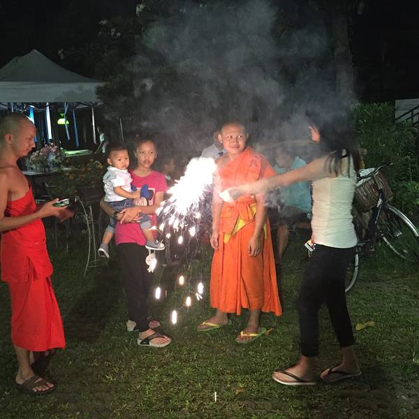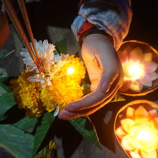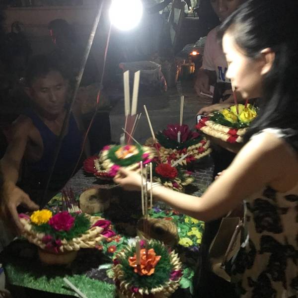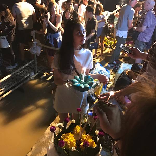 出发前收到今年水灯节取消的消息,不过,最终还是照常举行了拍了些天灯的照片,就去放水灯了,在nawarat bridge上有卖水灯,都是当地人手工制作的。