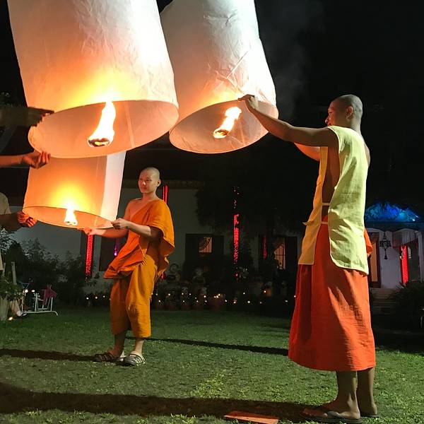因为它是清迈控必须参加的一个节日~水灯节是最喜爱的泰国节庆(没有之一),发现寺内有各式彩灯庙内传出阵阵梵音,非常的特别又酷炫,不过这也就只有清迈古城才有办法办到吧!:)3年前错过了水灯节,给了自己一个重返小城的理由,因为它是清迈控必须参加的一个节日~水灯节是最喜爱的泰国节庆(没有之一),发...庙内传出阵阵梵音,非常的特别又酷炫,不过这也就只有清迈古城才有办法办到吧!:)3年前错过了水灯节,给了自己一个重返小城的理由,因为它是清迈控必须参加的一个节日~水灯节是最喜爱的泰国节庆(没有之一),发现寺内有各式彩灯之外,还有民众祈愿的烛光丶小僧们手持天灯,随着佛祖面前水光到映,幻化成一幅最华丽的水灯节美景,也弥补了我对於无法参加万灯施放的遗憾。万人天灯现场,地点其实在离清迈20多公里外的申塞县梅州大学附近,票早都已经售空了~
