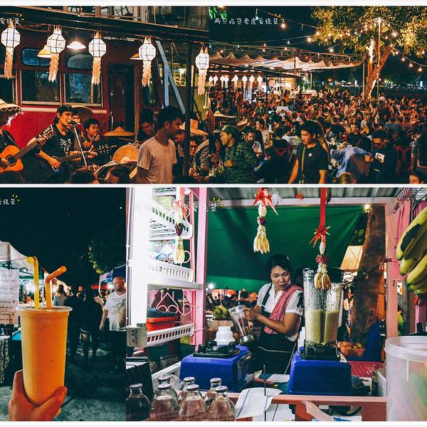 喵喵已经盘算着下次要带着胡子一起来清迈水灯节啦٩(•̤̀ᵕ•̤́๑)ᵒᵏᵎᵎᵎᵎ走回夜市时候又经过铁桥,那里还有一个放水灯的点。庆祝的人们早已经在水灯点旁的大排档喝嗨了,还有现场乐队助兴。因为之前吃的太饱,就只买了现做的水果奶昔。 展开