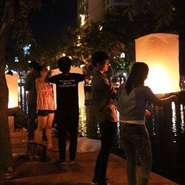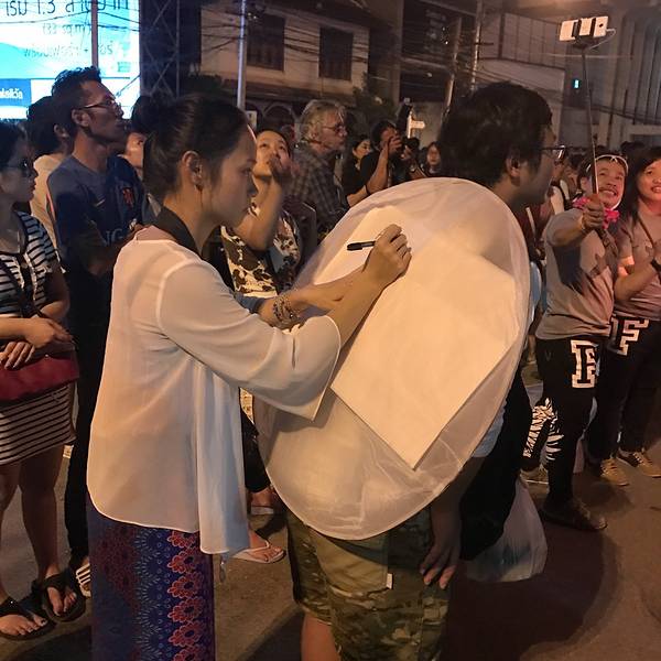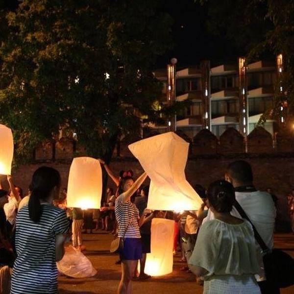 水灯节前后你可以看到到处都有卖天灯,甚至在去会场的门口,但是切记,免费场是不能带自己的天灯进去放的,必须在进场地后购买主办方的天灯(统一价格,大小和尺寸),门口会有查的