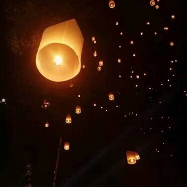 孔明灯是以竹片纸糊成的白色灯笼,高约两公尺,直径约半公尺,灯笼底部开口的部分以铁丝架支撑,支架中间点燃蜡烛或浸湿的油布,以热气球上升的原理让它徐徐向黑暗的天空飘去...燃放孔明灯,也是庆祝的仪式之一。