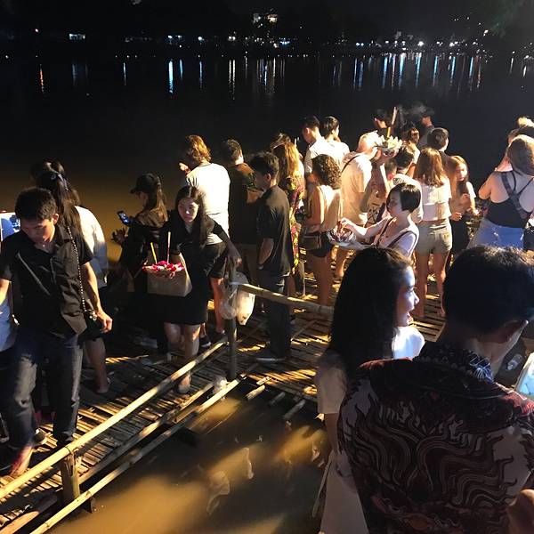 喵喵已经盘算着下次要带着胡子一起来清迈水灯节啦٩(•̤̀ᵕ•̤́๑)ᵒᵏᵎᵎᵎᵎ活动差不多7点开始,吃完饭后喵喵和闺蜜匆匆敢去附近的放灯点-- 铁桥 (iron bridge Sapaan Lek),从夜市到铁桥的路上看到了古色古香的泰式木屋,顺便也买了个水灯。铁桥上太窄拍照不理想,决定徒步去前面的九宝桥...活动差不多7点开始,吃完饭后喵喵和闺蜜匆匆敢去附近的放灯点-- 铁桥 (iron bridge Sapaan Lek),从夜市到铁桥的路上看到了古色古香的泰式木屋,顺便也买了个水灯。铁桥上太窄拍照不理想,决定徒步去前面的九宝桥 (Nawarat Bridge)。一路上全是街边小吃,还有卖萌的乌龟水灯(๑˃̵ᴗ˂̵)و九宝桥更宽阔,放灯的人也越多。亮度高比之间更容易拍照。虽然场面虽然不及万人齐放天灯的规模,但重在气氛,每每放出一个灯就会有一群人为你喝彩,真的是超开心!