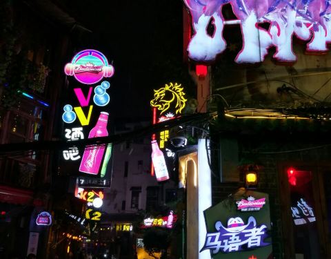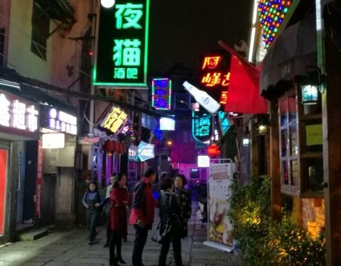 酒吧一条街看着有点脏乱差,很多人在店门口拉人,酒吧也就大同小异...为了去酒吧特意弄了下头发,哈哈