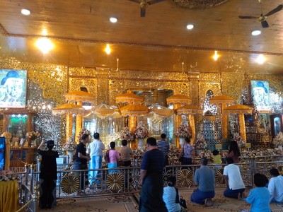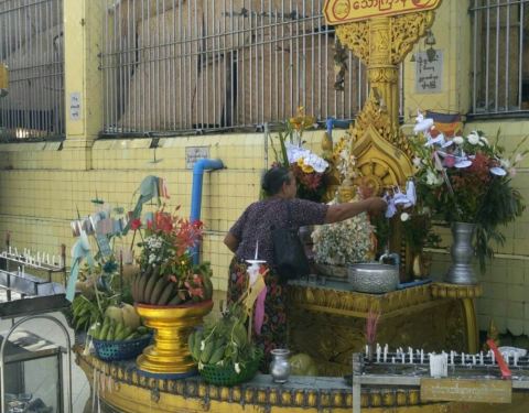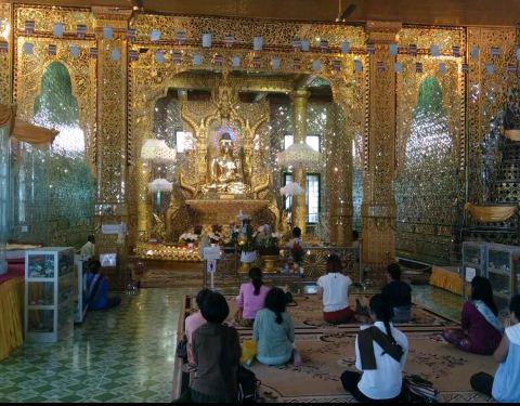 离仰光老城区很近,波特涛塔在仰光河边,门口的街道商业味道很浓。来到时刚好后墙在贴金,内部修建有黄金屋密室,,进入密室,果真是金碧辉煌,光耀夺目,精致奢华,除了地板,眼见之处没有一处是没用金箔覆盖的,并且墙花精心,图案柔美,很值得过来一游。