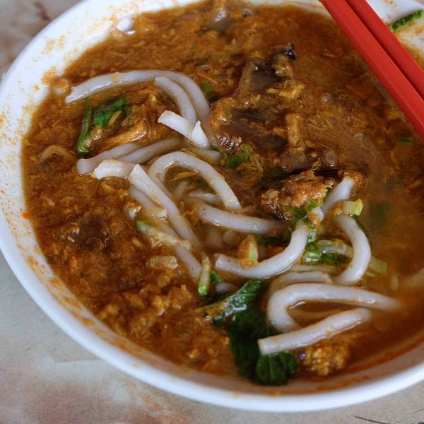 金叻沙就在南光茶室,目前已经有30多年的历史,是由尤水源先生所创办的,目前已是80岁高龄。目前已经转手交给好朋友John和姐姐Ann继续传承。 金叻沙提供亚参叻沙和暹罗叻沙,加入了较多黄姜和蓝酱,味道尤其浓郁香辣,很有特色。因此有很多游客慕名前来,人气很旺。