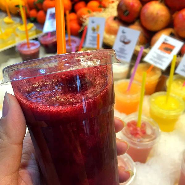 鲜榨的饮料一欧元一杯,超级好喝。卖酒的摊位,西班牙的红葡萄酒超级便宜