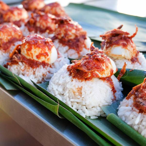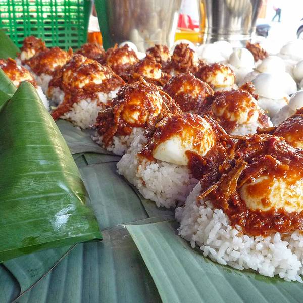 马来西亚人每天一早起身,最爱的早餐就是一包香蕉叶包着的椰浆饭,饭上淋上香辣的辣椒酱汁,简直可以用无辣不欢来形容马来西亚人。一般上路边摊的价钱都比较便宜。
