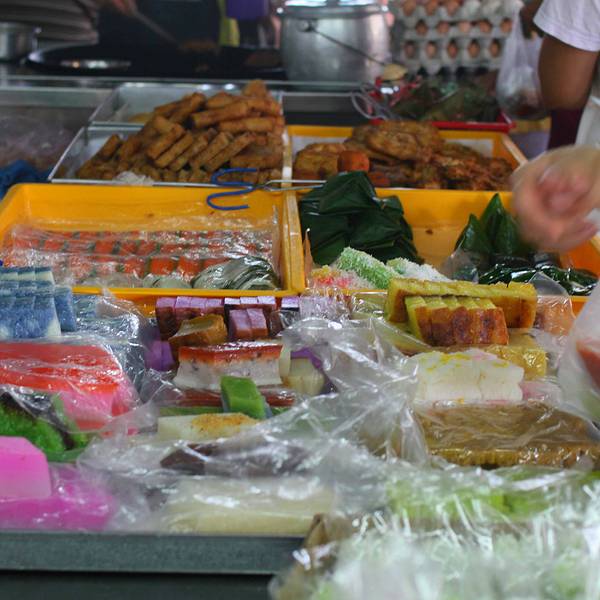 在槟城要吃娘惹糕,最容易找到的地方都是市集,通常都有卖。至于选择多,那么就要来到了七条路小贩中心的娘惹糕档口,选择多,加上两个档口都在一起,你可以互相作比较,方便自如,你可以在马币5块内吃到很饱的娘惹糕点。 娘惹糕点多数都离不开椰浆,只要3-4块,就会吃到很饱了。 每逢佳节的话,该娘惹摊位都有推出季节性的糕点,譬如汤圆、粽子、红龟、发糕等等 七条路小贩中心在旁边有收费停车场,这个小贩中心虽然在乔治市,但是远离旅游景点和壁画,比较少游客前来,从光大步行15分钟可以抵达。除了娘惹糕点之外,鸭肉粿条汤和牛干冬白咖喱面是不可错过,其中一摊“炒沙莪”是槟城少见的传统小炒,据说是槟城剩下的数摊。