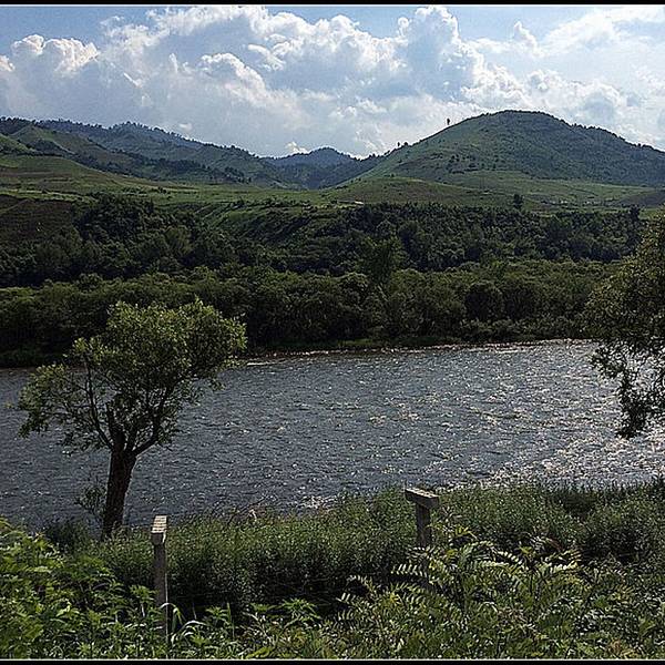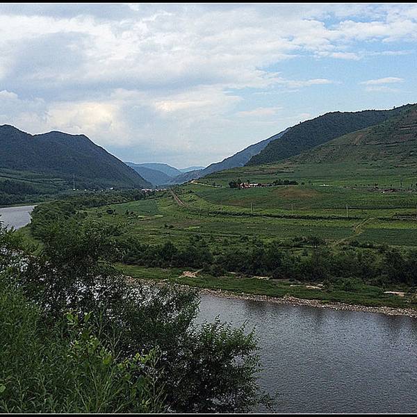 今天行程是从白山经临江至长白山的望天鹅景区,全程320公里。临江位于长白山腹地,鸭绿江畔,与朝鲜两道(两江道、慈江道)三郡(中江郡、金亨稷郡、慈城郡)隔江相望,边境线长146公里。我们选择这条线,是因为从临江走上省道303,正好沿着中朝边境的界河即鸭绿江逆流而上,一路可以观赏鸭绿江两岸中朝沿江的风景。听说当秋天,满山枫叶红了的时候,沿线的景色更是漂亮。