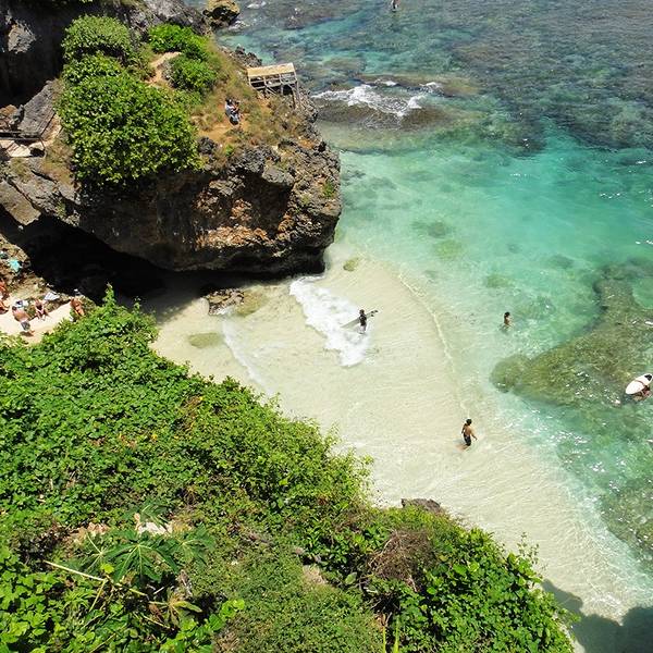 Uluwatu Beach位于Uluwatu Temple 附近的悬崖下,这里风高浪大,是天堂岛上最好的冲浪点之一。