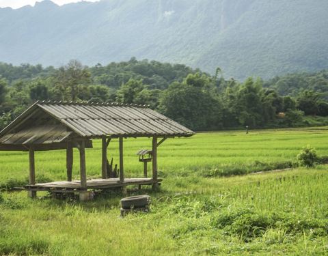 一年前去过,从清迈骑小绵羊去,两个多小时,屁股都要开花了。但是一路上景色很美,到清道后很是惊喜,这是比拜县更安静更本土更美丽的小地方。空气清新,大片的田园,山林,果园,还有分布在其中的色彩明快的房子,这里的小清新一点也不刻意,因为人们就是生活在小清新里啊。