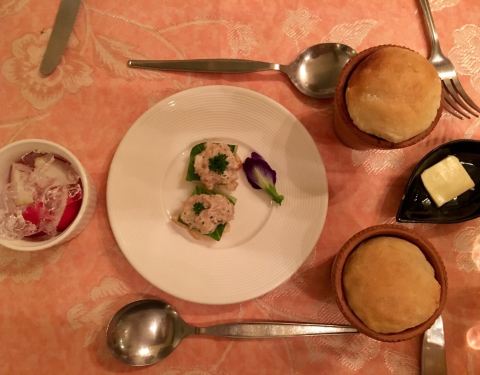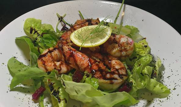 比较简单的法国菜,不是特别的的讲究,店里面的灯光比较的昏暗,牛肉做的不错,有很多特色香料,鹅肝面包属于有泰国特色的一种了。 - 牛排和鸭肉都不错,但虾真的不好吃,不新鲜的感觉,面包很干,不合口味,不建议尝试