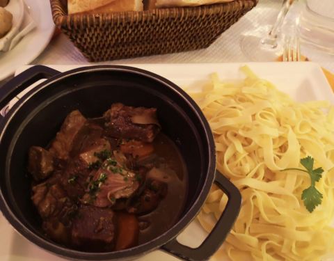 法国菜,不是那么正式的,做的也是法国家常菜,什么炖肉啊蜗牛啊之类,还是很好吃的,而且分量还可以的,面包很好吃,沾点肉汤,就很美了