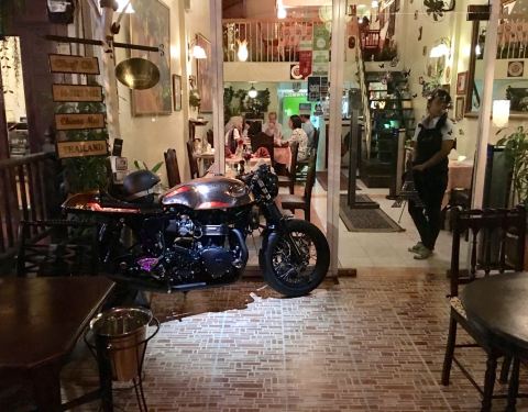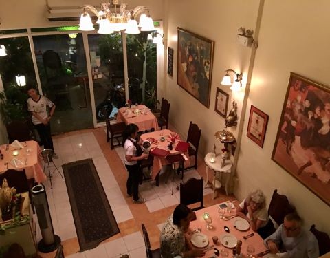 餐厅需要提早预定,虽然餐厅有两层,但是桌子就只有那么的几张,很容易发现的位置,烤鸭超乎想象地好吃,肉好想在口中要化掉一样,牛排推荐的程度刚刚好,不会有血,而且肉质是最嫩的,环境很安静,饭后还送了一...餐厅需要提早预定,虽然餐厅有两层,但是桌子就只有那么的几张,很容易发现的位置,烤鸭超乎想象地好吃,肉好想在口中要化掉一样,牛排推荐的程度刚刚好,不会有血,而且肉质是最嫩的,环境很安静,饭后还送了一份甜品,很感谢,去清迈的不妨一试。
