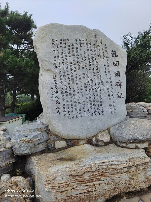 龙回头景区还是不错海面宽广,修的木头栈道也很干净,大家千万不要在景区头立着的那个大石头刻着龙回...住处到龙回头景区打车12元,车程10分钟,也可做2路汽车,兴城公交车票价都是2元,我们人多还是打车比较合适还方便。