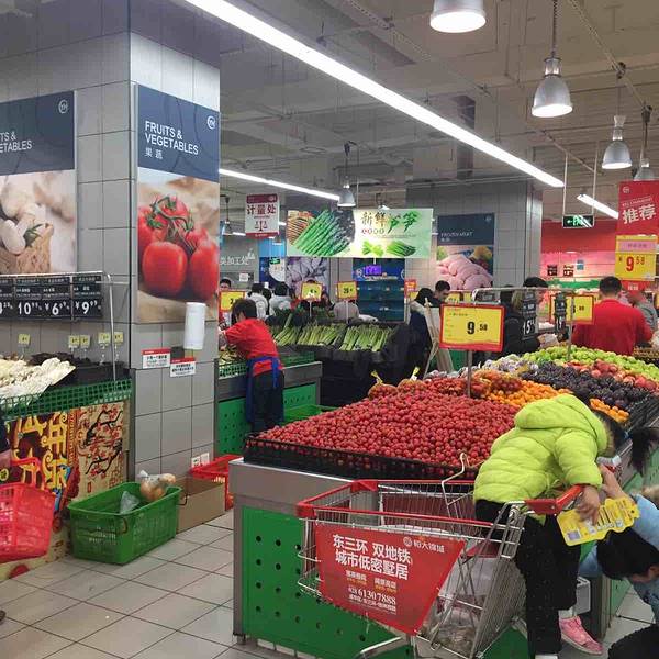 特别是生鲜方面,蔬菜都很便宜,而且品种也挺多的,之前在外面买不到的秋葵,在这里都有卖,肉,排骨...
