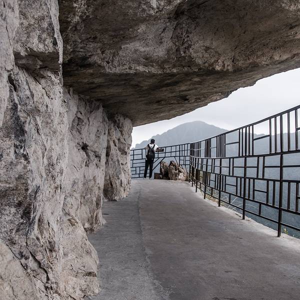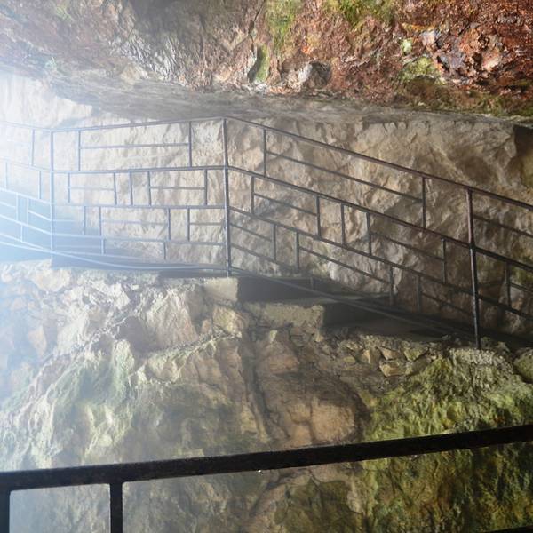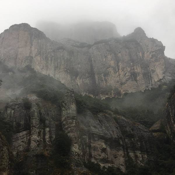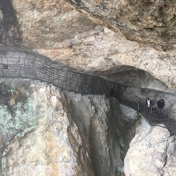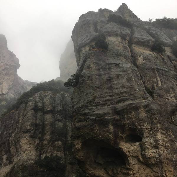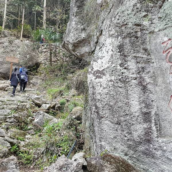 结束了大龙湫,直接去离的最近的方洞。由于时间充裕,我直接找...位于灵岩,生得整而不欹,洞内有三处滴泉,积水可饮。洞口有百余米的栈道,在绝壁中架起,险峻非常,许多人不敢尝试,近年筑以栏杆,才有安全之感。