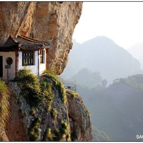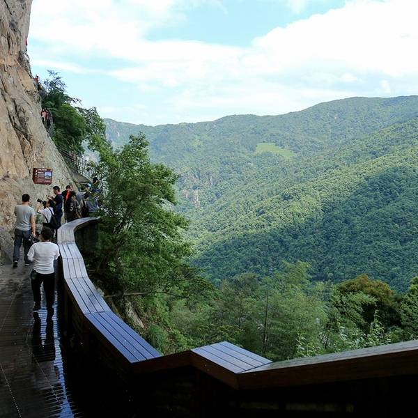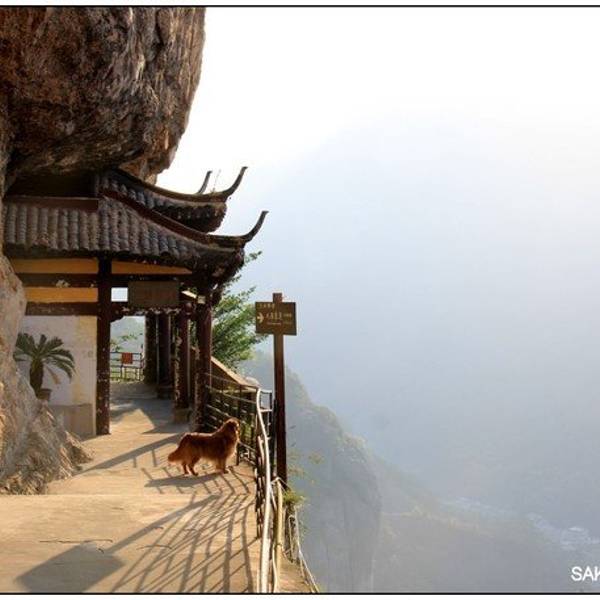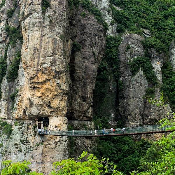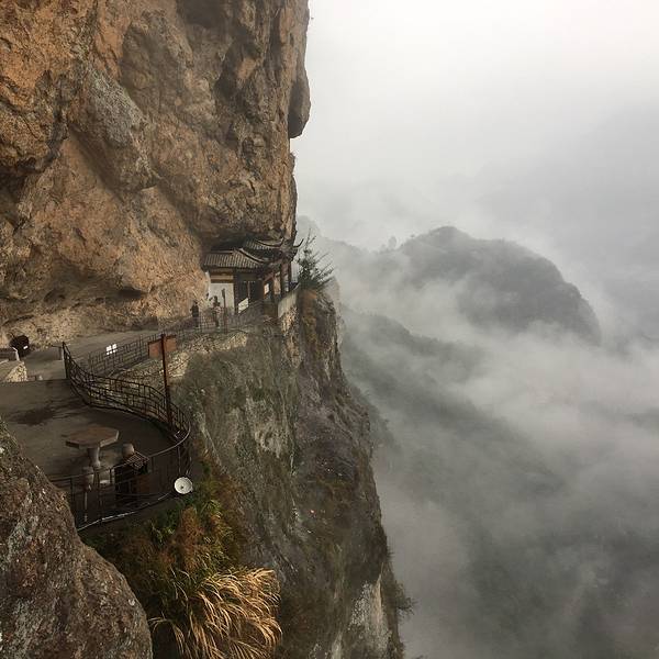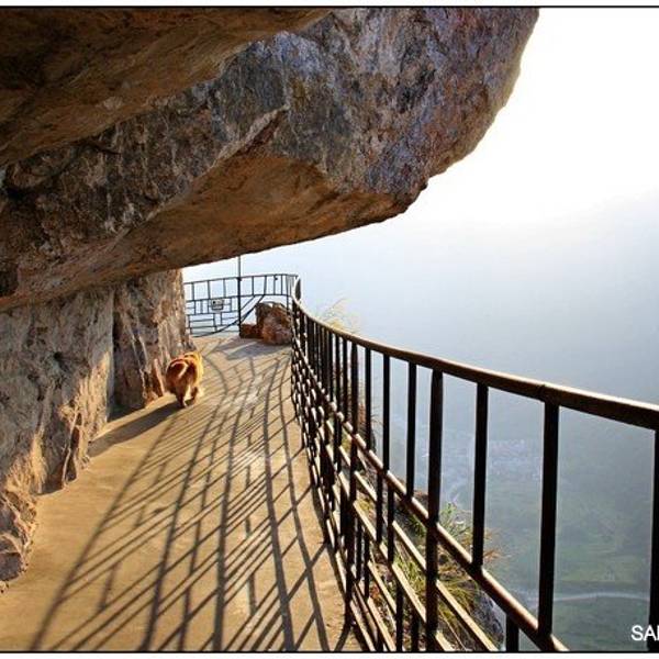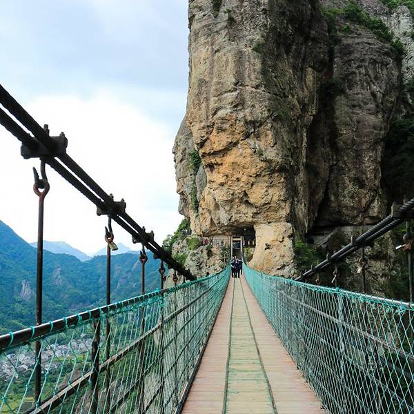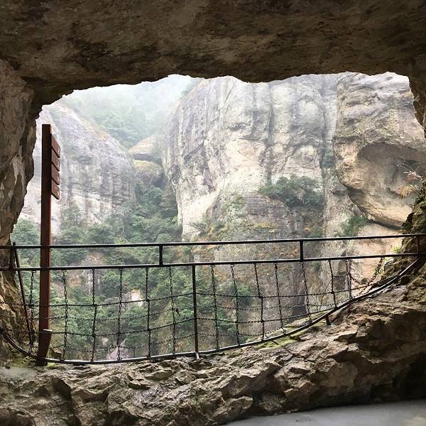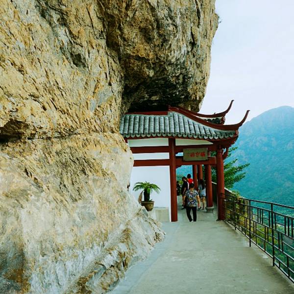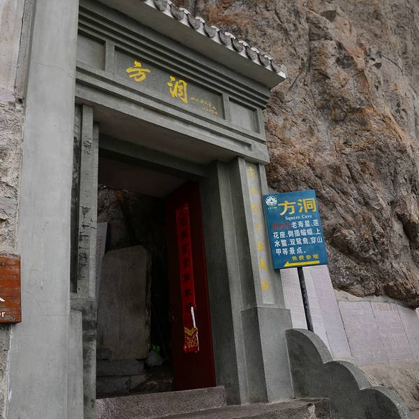 方洞最好看的是有一个吊桥,悬挂在两山间,远看山下云海缭绕。下雨就这样可以看到云海...位于灵岩,生得整而不欹,洞内有三处滴泉,积水可饮。洞口有百余米的栈道,在绝壁中架起,险峻非常,许多人不敢尝试,近年筑以栏杆,才有安全之感。