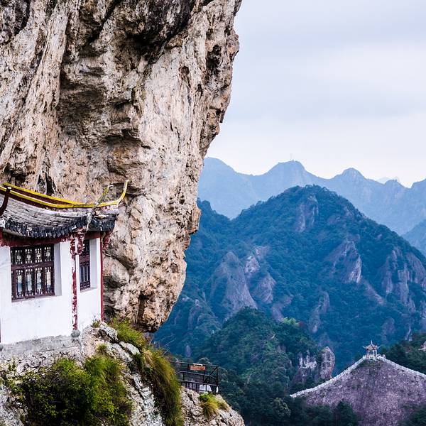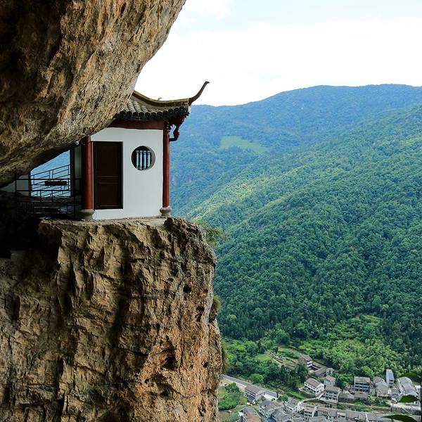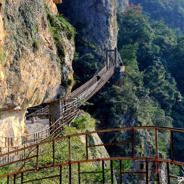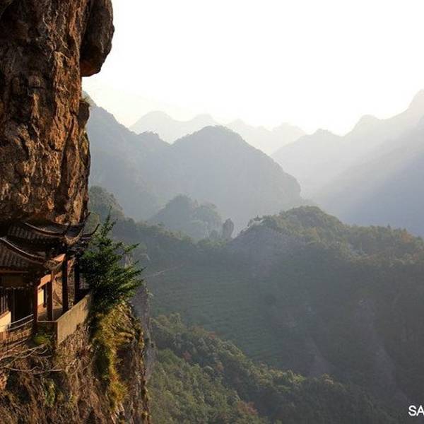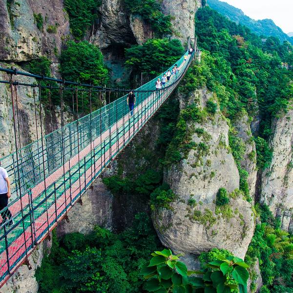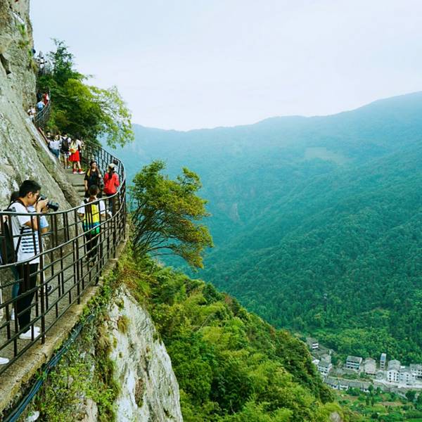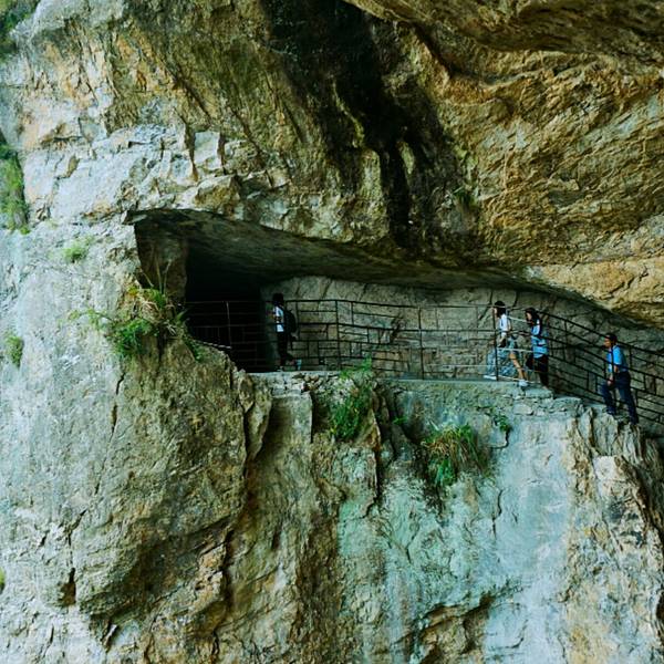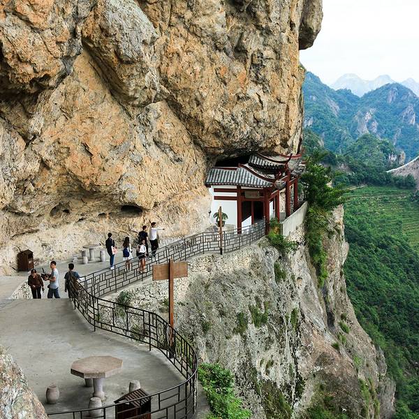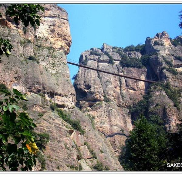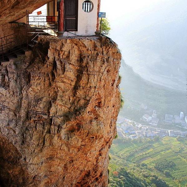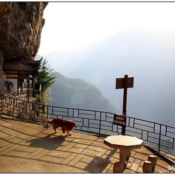 方洞最好看的是有一个吊桥,悬挂在两山间,远看山下云海缭绕。下雨就这样可以看到云海...位于灵岩,生得整而不欹,洞内有三处滴泉,积水可饮。洞口有百余米的栈道,在绝壁中架起,险峻非常,许多人不敢尝试,近年筑以栏杆,才有安全之感。