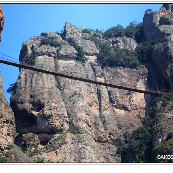 感觉这的景区都不是很大,门票都是单独买的,没有联票,想玩哪个就玩哪个。方洞景区其实就是在山腰上,把以前的一些天然洞穴经过人工开凿,把他们互相串联起来,最大的看点就是这个连接两山的铁索桥,萨克斯在上面来回走了几遍。站在崖壁栈道上可以看见半边的雁荡山景色。,可以弥补灵岩景区被关闭的卧龙谷和断肠崖不能去的遗憾。从这儿看到的风景和卧龙谷看到的是一样的,而且视野更广,能看到更全的景色,当然萨克斯要站起来看。这是雁荡山比较有特色的一个景点,也是雁荡山核心景区中少数站在高的位置可以俯视和眺望雁荡山的景色!萨克斯就喜欢这感觉有道是:苦海无边,回头是游客的拥抱,累点也是值得的,呵呵。看到那个龟了吗?这是只迎客龟,欢迎远道而来的萨克斯,真的是栩栩如生。