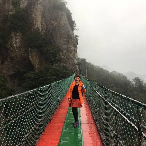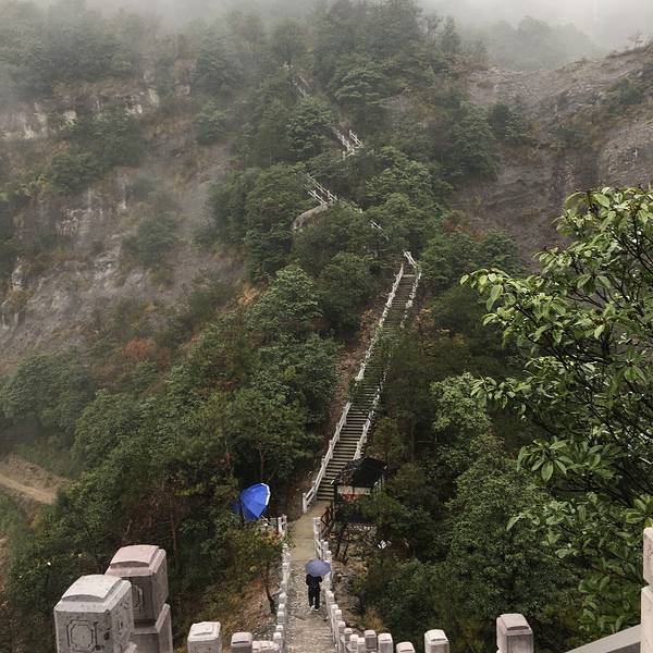 结束了大龙湫,直接去离的最近的方洞。由于时间充裕,我直接找路爬上方洞,当然没有体力的可以做缆车上哦。方洞最好看的是有一个吊桥,悬挂在两山间,远看山下云海缭绕。下雨就这样可以看到云海,可是也不好之间就是我被淋成个落汤鸡。呜呜~~~~