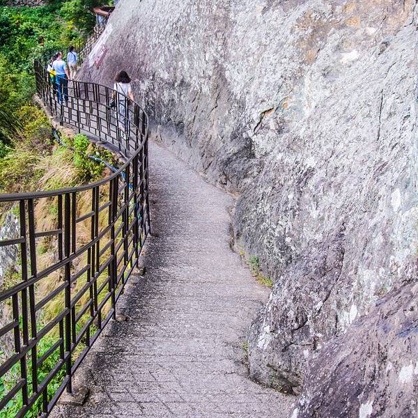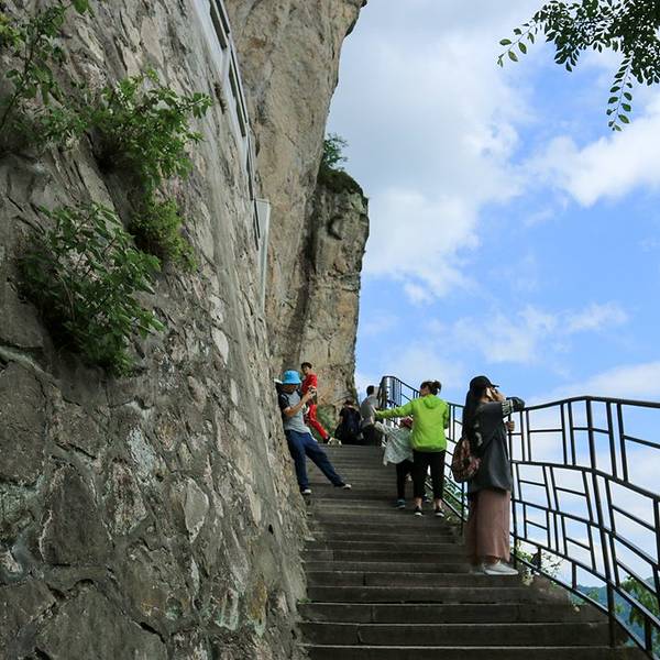 实用 洞口有百余米的栈道,在绝壁中架起,险峻非常,许多人不敢尝试,近年筑以栏杆,才有安全之感明明记得买门票的时候,看到了灵岩的字样,顺着缆车上山后走栈道又遇到“方洞”的字样。。。。。