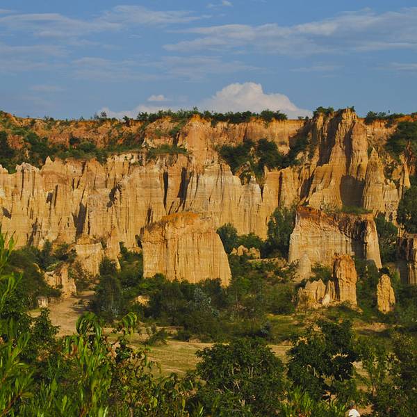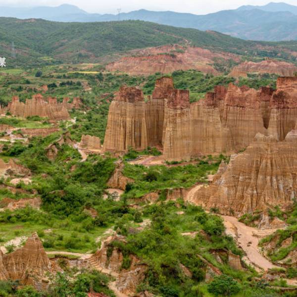浪巴铺土林又名新华土林,海拔1560—1640米,面积1.4平方公里,它是流水侵蚀的一种特殊地貌形态,是特殊的岩性组合,是在构造运动、气候、新构造运动频繁、地壳抬升速率快、流水侵蚀力强等综合因素相互影响下形成的。