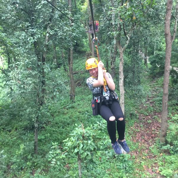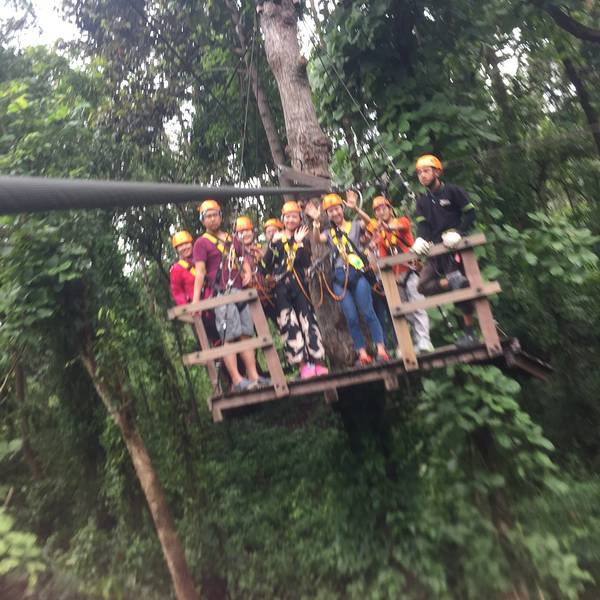 教练很用心的在逗我们笑,还拿手机帮我们拍照录视频,最后吃完饭给了40b小费。早上...开始是兴奋激动的,还把刺激和尖叫准备好了,结果越飞越乏味,就是排队从一棵树滑到另外一棵树的过程,而且参加的都是中国人。