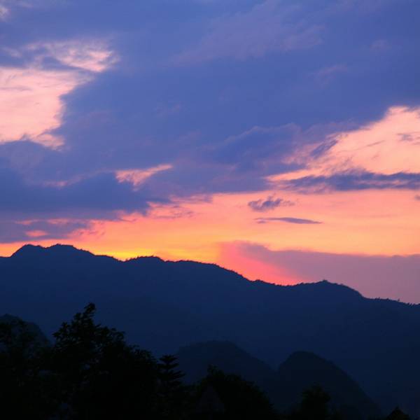 在三排瑶寨的对面,是一个大山谷,谷中群峰突兀,百峰争雄,仿如千军万马,汹涌而来。伫立于此,感觉有如君临帅台,点兵阅将,故此景得名“万山朝王”非常贴切。