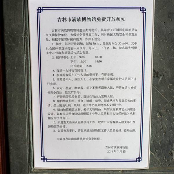 开馆时间:9:00——...吉林市满族博物馆位于吉林市北山脚下,北山公园停车场旁边,德胜路47号的王百川居宅旧址。