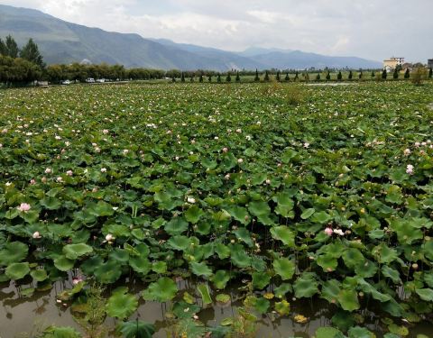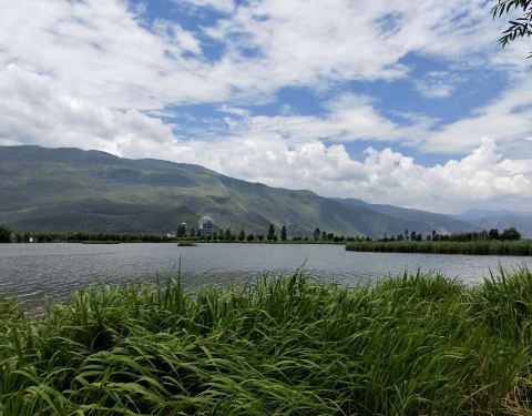由于坝子东西山脚众多潭泉和漾弓江流域水系源源不断,川流不息的来水,在鹤庆坝子形成了水域宽阔的天...