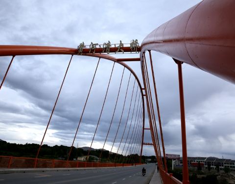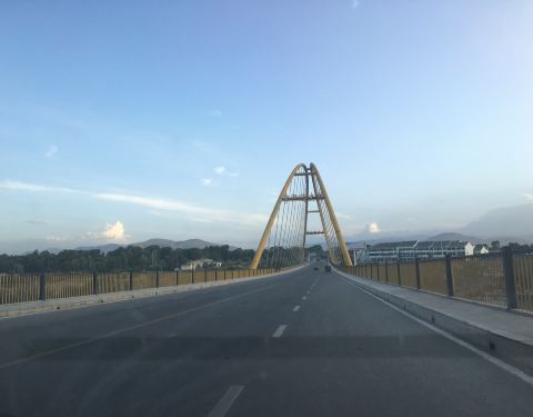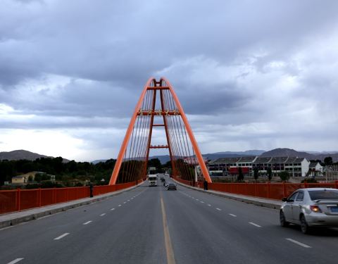 黄河清大桥位于青海海南贵德县,是一座比较普通的横跨黄河的拱型拉索大桥,其关键点在于桥下的那一段黄河水是绿色的,而不是常规所看到的带有大量泥沙的黄色的河水,放眼两岸风景不错的。