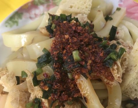 ...下第一大的转经桶,黄河边老妈妈做的青海酿皮子美味,辣的刺激,很是够味,足以代表青海酿皮子的味道