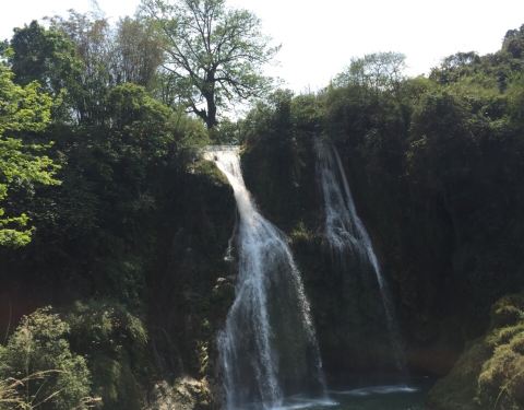 景区风光不错,入门前有家农家乐味道也不错。八月份正遇上雨季,河水溢满,瀑布咆哮而下,非常壮观