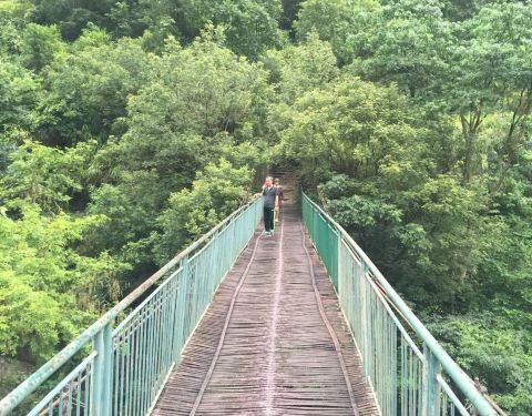 玉林弄自驾游。景区风光不错,入门前有家农家乐味道也不错。八月份正遇上雨季,河水溢满,瀑布咆哮而下,非常壮观。还有看似惊险的铁索桥,值得一游。但从高速下来到景区10多公里的路实在是烂,原本是很好的水泥路被修铁路的工程车碾压后,变成坑坑窝窝的非常难走。如你不是开大客车、大卡车、越野车、后驱农用车、牛车、马车去的,建议你不要去,等过了两年修好路再去吧!