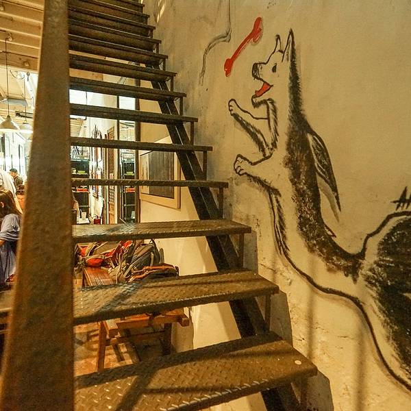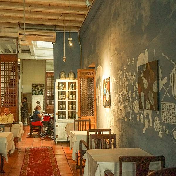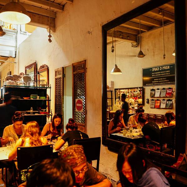 这是一个咖啡馆,新形式的咖啡馆,结合了阅读、艺术、展览、美食的一个空间,装修风格复古风,占三间门面,内部设有多个空间,有Kopi C.Espresso、BTB & Restaurant、Beach Street Bakery、 14Chairs、Vine & Single、Reading Room、Courtyard & Cafe & Burger Bar、Canteen & Bar、Art + Theatre 等等,不同空间开放时间也不尽相同。 我们接近下午两点抵达,咖啡馆里依然很多人,不提早预订都极有可能没有座位。 地址:83B Victoria Street and 153&155 Beach Street, Georgetown, Penang. 营业时间:KopiC 9am-11pm/BTB 630-1030pm/Courtyard 12pm-11pm