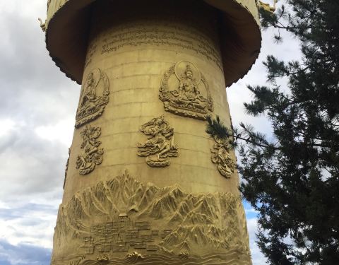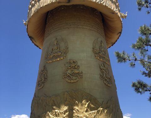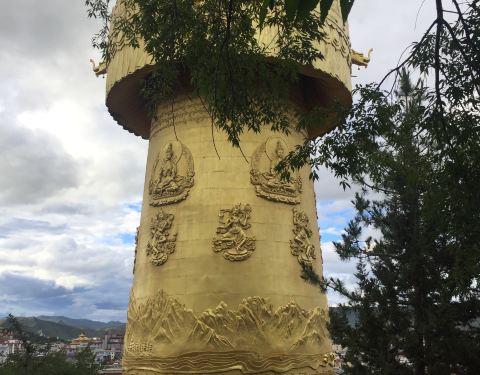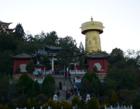 大佛寺转经筒位于龟山公园顶端,这是独克宗古城的最高点,高高的、金黄的转经筒格外引人注目,整个迪...大佛寺转经筒位于龟山公园顶端,这是独克宗古城的最高点,高高的、金黄的转经筒格外引人注目,整个迪庆寺都能远眺它。这个转经筒是亚洲最大的,一个人是转不动的,基座上有许多拉环,供人们拉动。据说在这转三圈...大佛寺转经筒位于龟山公园顶端,这是独克宗古城的最高点,高高的、金黄的转经筒格外引人注目,整个迪庆寺都能远眺它。这个转经筒是亚洲最大的,一个人是转不动的,基座上有许多拉环,供人们拉动。据说在这转三圈,好运连连。 展开